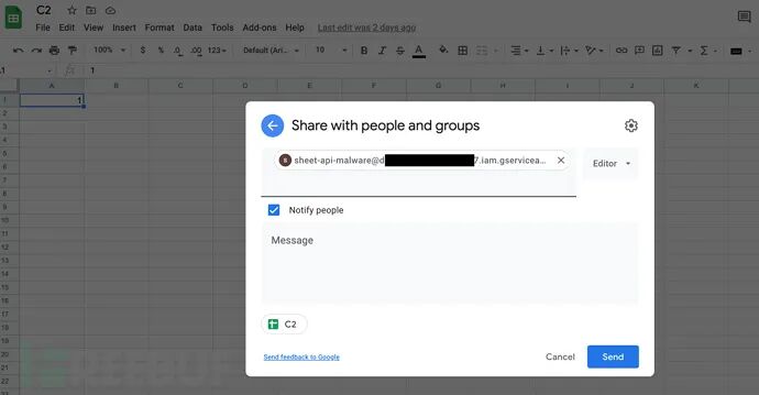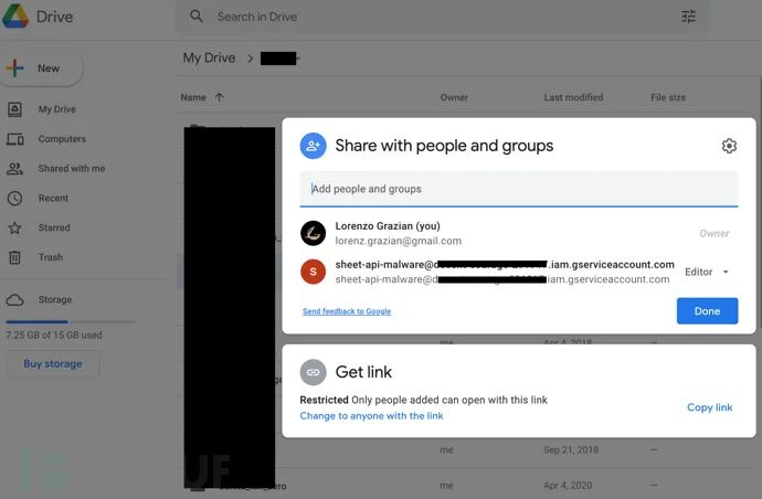 第四步:配置Google Sheet和Google Drive。创建一个新的Google Sheet,并添加服务账号至spreadsheet的Editor组。