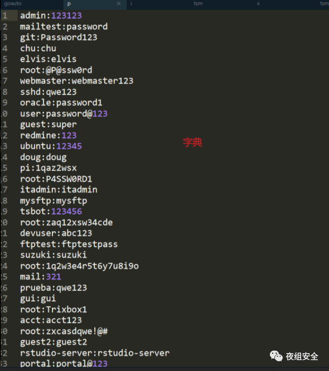 10、对文件夹下文件内容进行查看,发现.ts文件里存在对外爆破的IP地址及字典内容,判断为黑客留在服务器上的字典、ip列表及脚本: