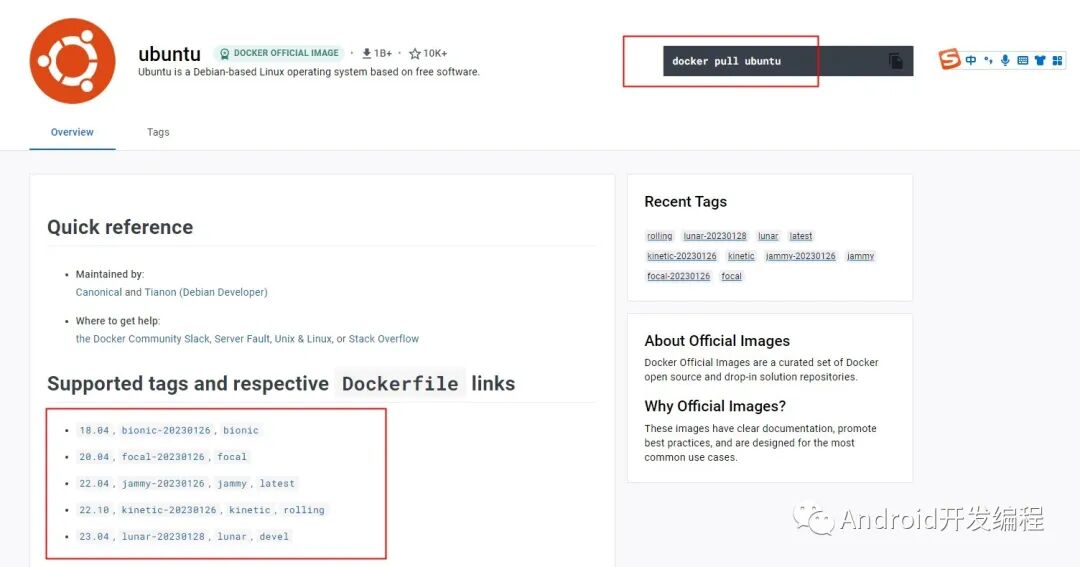 在https://hub.docker.com/网站上搜索ubuntu 找自己要下的版本