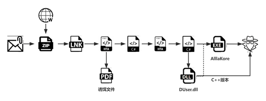 鱼叉式钓鱼邮件,以压缩包中的lnk文件为攻击入口点;