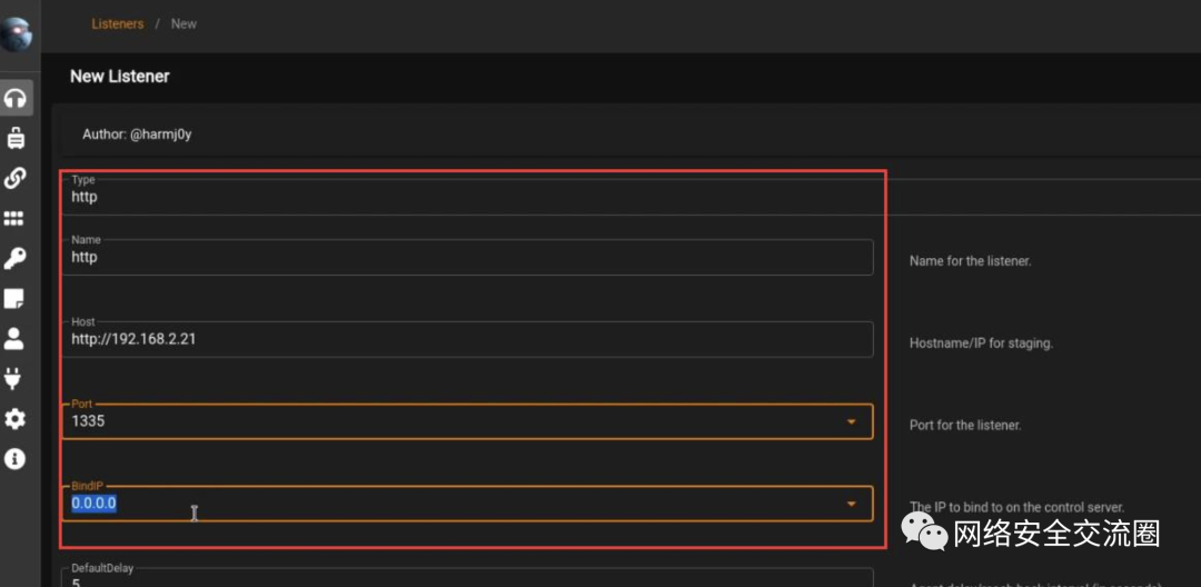 2、您现在需要指定监听器选项,确保您在主机字段中指定Kali IP,如下面的屏幕截图所示。