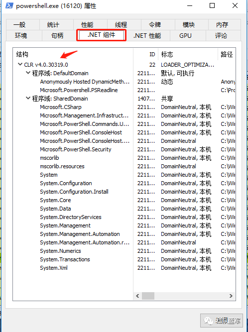 根据XPN在他的博文Hiding your .NET - ETW一文中指出利用ETW(Event Trace for Windows)检测CLR的加载。而ProcessHacker或者ProcessExplorer这两款工具都能从进程角度查看进程是否加载了CLR环境。
