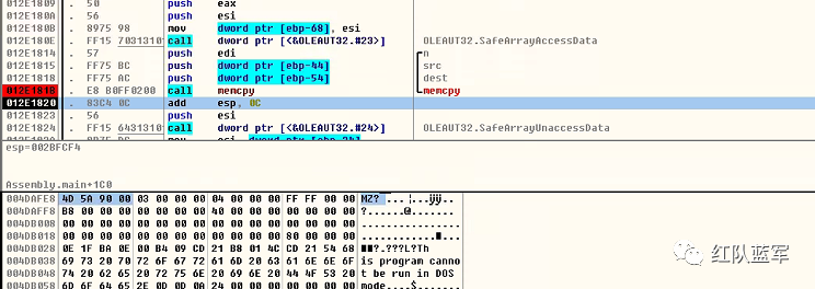 MSVCRT$memcpy(pData, AssemblyBytes, AssemblyLength);