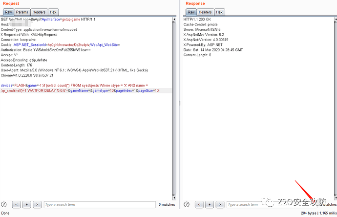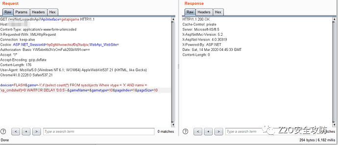 不甘心,于是来到burp,如果xp_cmdshell启用返回时间应该是>=5,然儿只有1秒多钟,