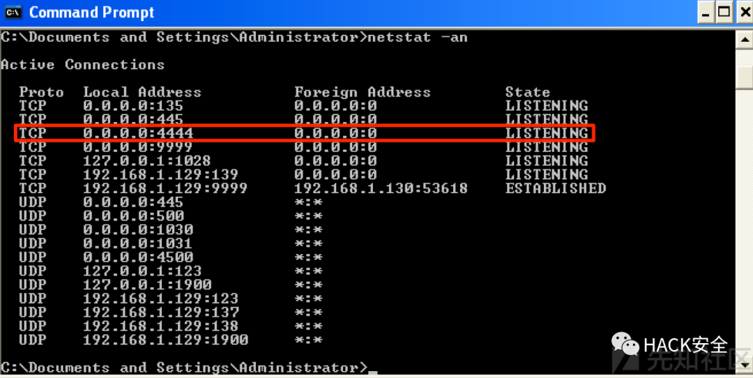 运行这个程序后,就会使目标机在4444/tcp端口进行监听。