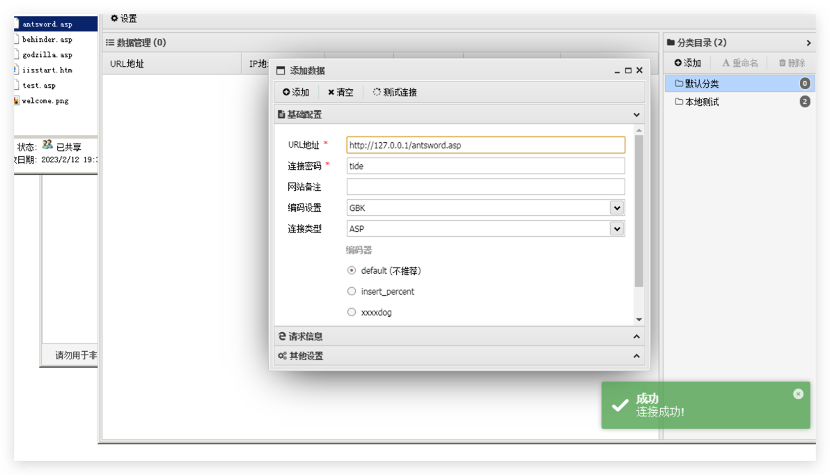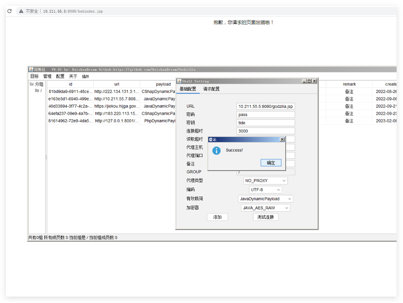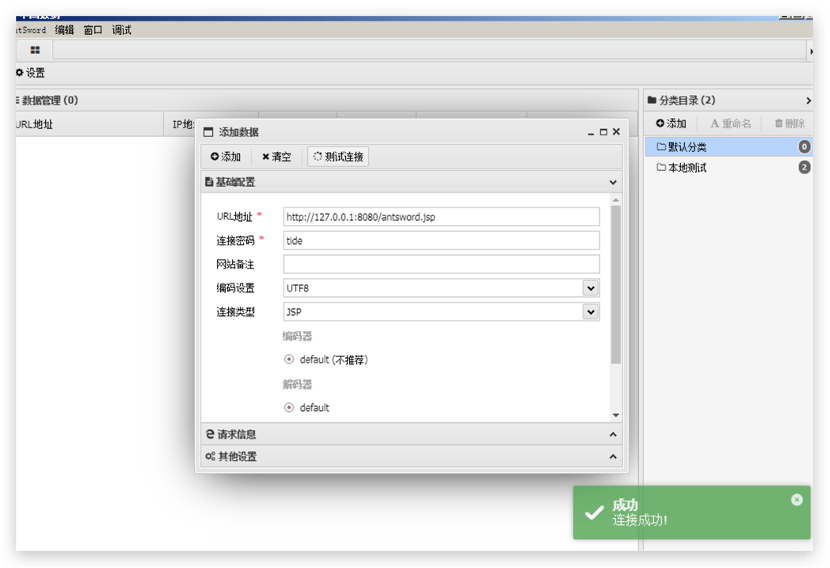 测试环境php版本为5.2.49、tomcat版本tomcat8、密码/密钥均为tide,因篇幅关系只列举部分测试截图。