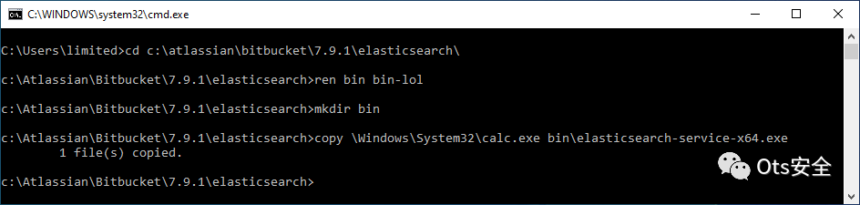 在 Crassus 输出中,我们可以看到它c:\atlassian\bitbucket\7.9.1\elasticsearch\bin\elasticsearch-service-x64.exe具有特权,但由于它正在运行,我们不能简单地替换它。但是,我们可以使用另一种技巧来劫持它。我们可以简单地重命名它所在的目录,创建一个同名的新目录,并将我们的有效载荷以相同的名称放置在那里。