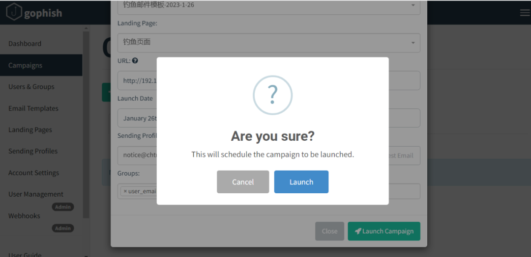 - Launch Date:即钓鱼事件的实施日期,通常如果仅发送少量的邮箱,该项不需要修改。