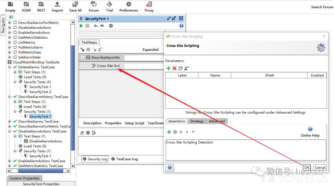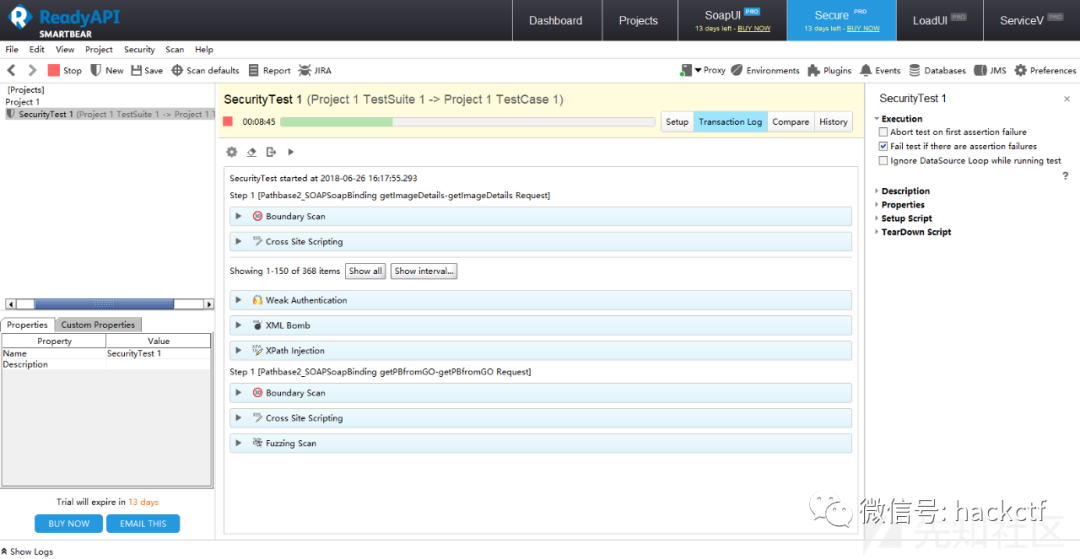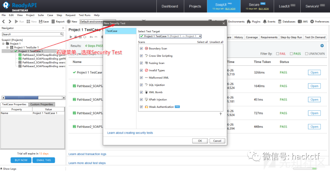 SUAP UI 会自动探测接口。然后在项目-测试Case的右键菜单中选择安全测试