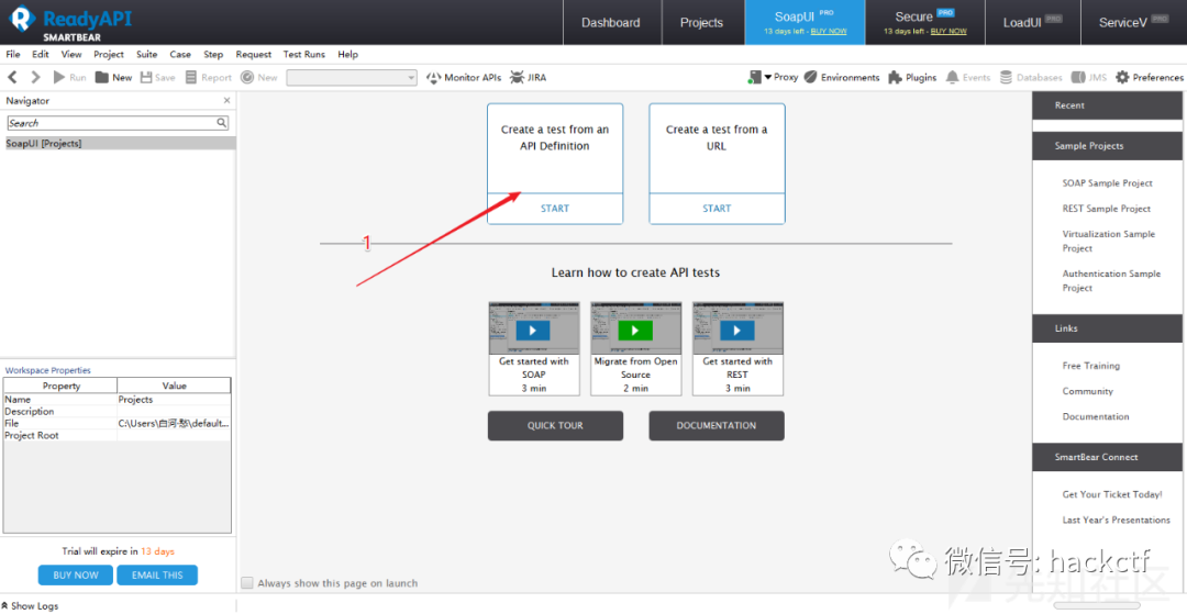 直接在 Soup UI 主菜单上选择运行一个测试。