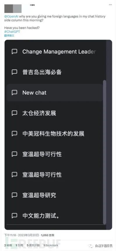 据悉,ChatGPT 用户历史聊条记录泄露事件早在周一就已经出现,国外部分用户在社交媒体上反馈其聊天记录中显示了来自其他用户的 ChatGPT 聊天对话。