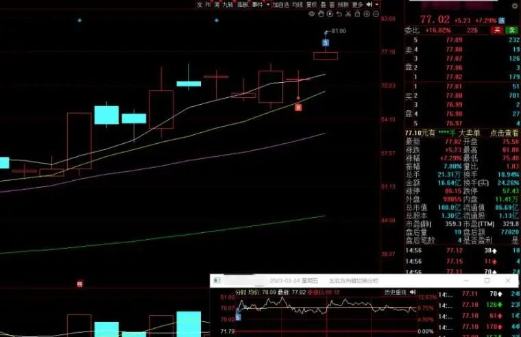 ChatGPT概念,热点处于上升阶段的强赚钱周期里,这里已经连续强化了4个交易日,就周一的时候弱化,剩余四天对很多趋势选手来说简直就是捡钱行情。先来看一下板块走势。竞价低开弱化,我就略微感觉到盘中有强化的可能性,为了执行复盘就没去做。最关键是大家怎么去理解十点到十点半之间那个弱化走势。那段就是我说的跟今天的弱化过程,但是他盘中是急杀,急杀一般都是吓唬人的,缓慢下跌那种最才是最可怕的。因此,今天实际上是有走一段弱化,只不过很短暂。是否可以这样理解?昨天的预测只对了一小部分,市场又拉起来了。不知道你们交易经验有多久,反正我的交易经验就是这种分时图基本是到顶部的特征。好的分时图应该是慢慢震荡拉升的,这种急杀说明有一部分资金已经提前逃离了。我们来看一下板块内部的演化过程,竞价鸿博股份继续顶死一字板并创下新高,三六零迅速强化,在10点半之前就封了个缩量板,前几天都是小阳线的慢慢走,今天突然加速,这种本来没有龙头特征,缩量昨天打出了龙头气质,说明市场已经摆脱了滚动向上的赚钱效应周期,回归正常,并且加速意味着即将到顶。三六零的快速涨停带动了一批跟风股,比如拓维信息、昆仑万维和汤姆猫,后面两个最有意思,重点讲,同样都是创业板趋势的跟风股,一个涨停,一个没有涨停,在板块10点半那个弱化的阶段,昆仑和他汤姆盘中都出现急杀,结果昆仑重新强化上涨,这是为何?首先我们要知道他们俩都地位都是跟风,说明强度有限,昆仑昨天走了个小阳线,汤姆猫昨天走的是突破上涨的形态,说明汤姆猫在昨天已经强化过了,基于他们都是跟风的地位,资金肯定优先选择昨天未强化的昆仑万维,昆仑万维午盘新高的时候实际上是一个很好的买点。今天市场还拉了一个相对低位的后排跟风中文在线,还有一个之前说的chatGPT分支电商板块也被强化,返利科技,华凯易百,蓝色光标,全都走突破上涨的形态,都有出现确定性较高的半路买点,但整个板块今天有跟风的性质,又多了一层不确定性。