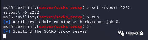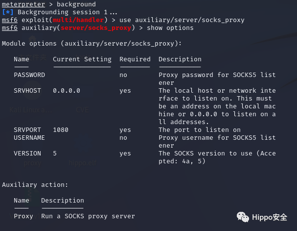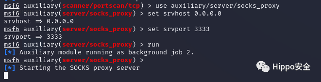 先切换到控制台background设置socks5代理use auxiliary/server/socks_proxy