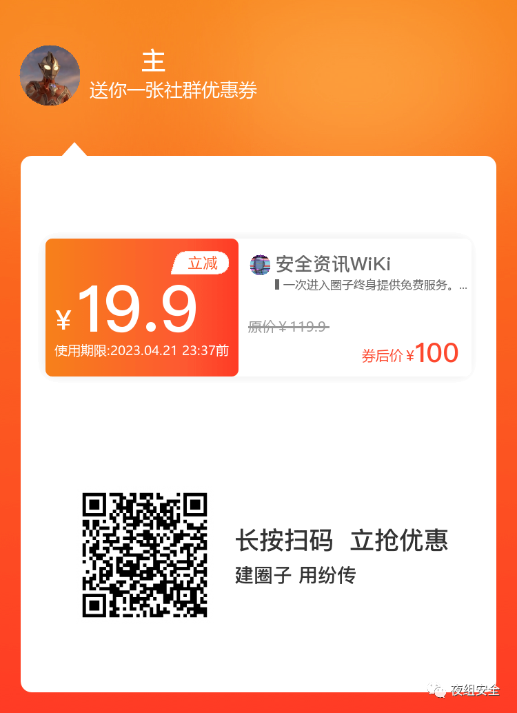 由于传播、利用本公众号夜组安全所提供的信息而造成的任何直接或者间接的后果及损失,均由使用者本人负责,公众号夜组安全及作者不为此承担任何责任,一旦造成后果请自行承担!如有侵权烦请告知,我们会立即删除并致歉。谢谢!