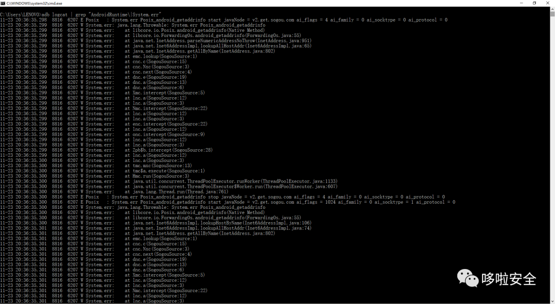 adb logcat | grep "AndroidRuntime" //过滤运行错误,过滤多个字符串,用"\|"分割开adb logcat | grep "AndroidRuntime\|System.err"