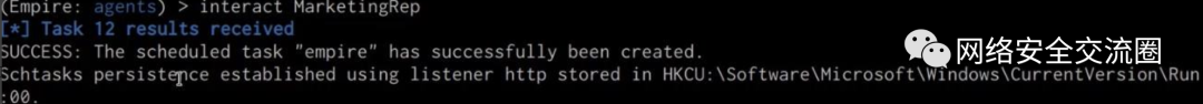 3、在配置模块选项之后,我们可以通过在Empire客户端中运行以下命令来执行模块: