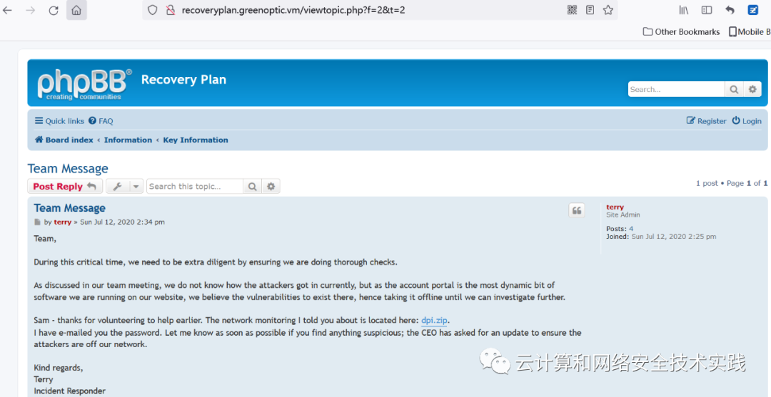 做一下目录暴破,dirb http://websrv01.greenoptic.vm,