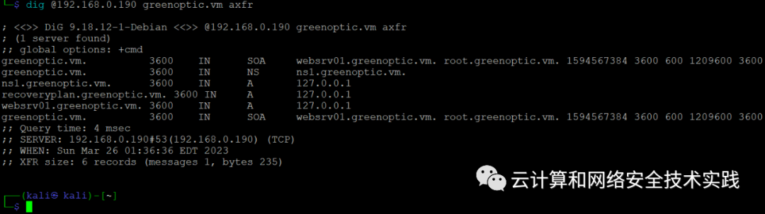 发现其它域名,dig @192.168.0.190 greenoptic.vm axfr,