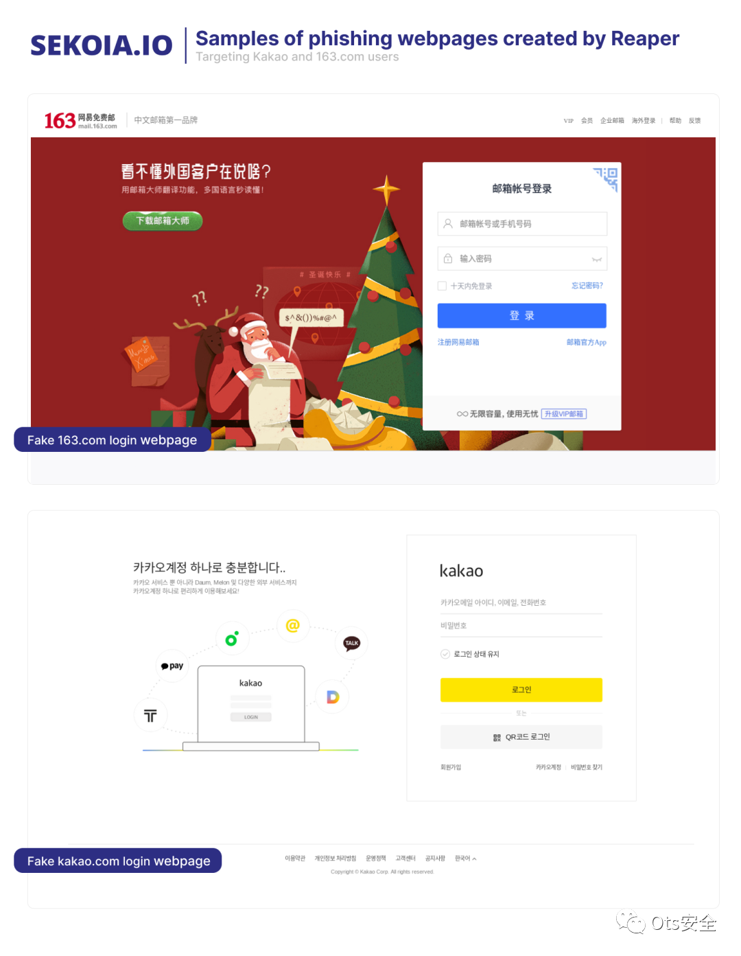 我们的第一个发现是针对多个电子邮件和云服务的网络钓鱼网页,例如Naver、iCloud、Kakao、Mail.ru和163.com。在某些情况下,我们能够检索网络钓鱼网页并分析其源代码。