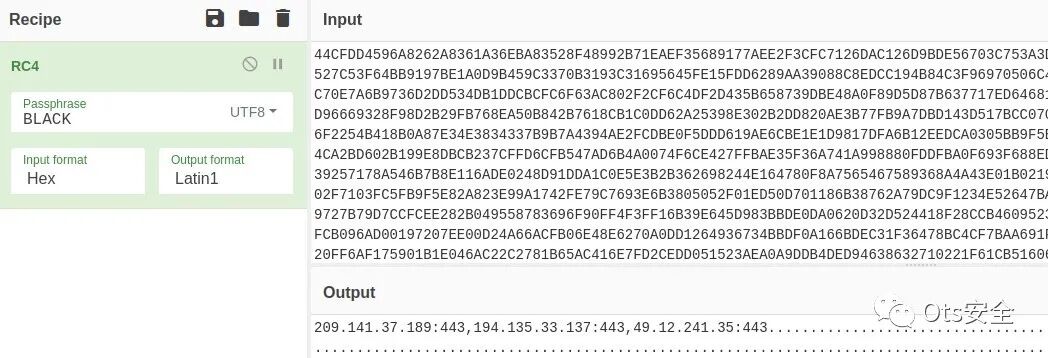 在我们调查的大多数有效载荷中,三个数据块使用 RC4 进行了混淆处理: