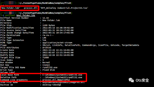 如下图所示,当执行LNK文件时,它会运行下面的命令来启动恶意DLL使用 rundll32.exe: C:\\Windows\\System32\\rundll32.exe procsvc.dll,HWgullOFkZ