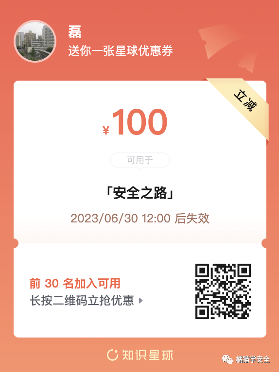 这是一个网安人的聚集地~为解决大多粉丝的提问,以及资源需求,特此联合几位师傅创办了知识星球;知识星球已经运营两年,内容大致为:(1)每日分享资料与工具,并进行了分类(2)创办了作业模块,偶尔发布作业与 2023-3-27 00:1:39 Author: 橘猫学安全(查看原文) 阅读量:33 收藏