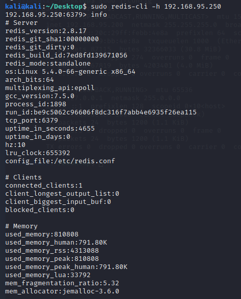既然无法反弹shell,那就从其他方向入手,nmap扫描结果发现6379端口开放着,可以尝试进行redis弱口令或未授权访问,尝试进行连接,发现存在redis未授权访问。