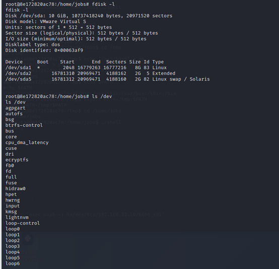 检查发现有三个磁盘文件以及很多的设备文件,所以我们可以/dev/sda1挂载到自己创建的文件夹。