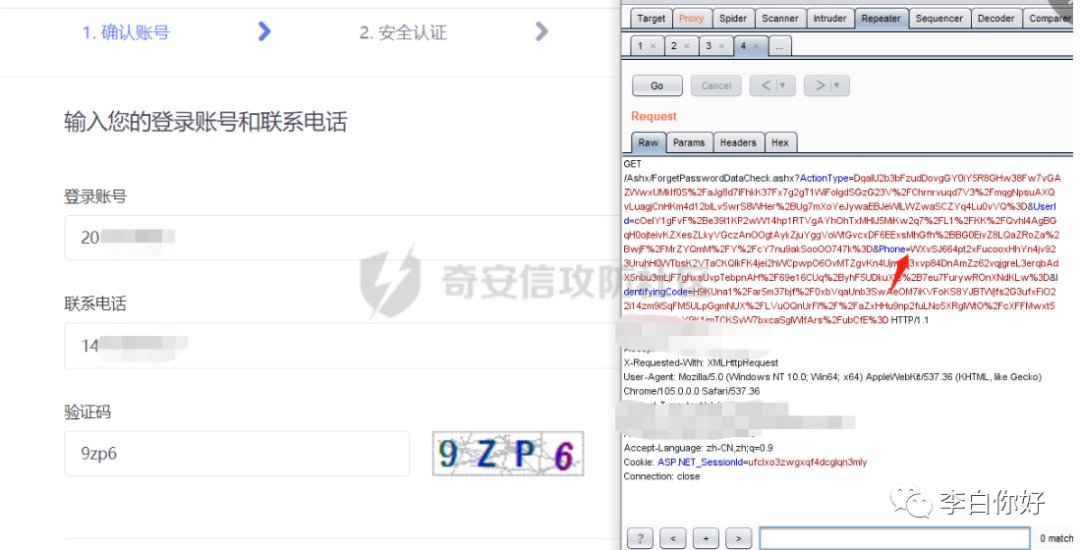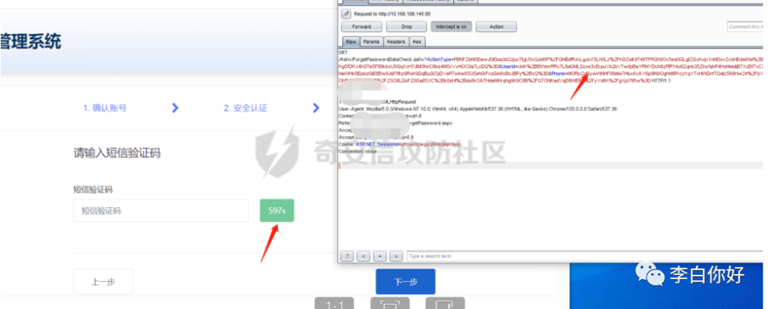 瞄了一眼获取验证码的数据包,咦这里怎么也有Phone值,这不就是第一步的手机号码加密值吗,直接替换成我的岂不是美滋滋,但是我们要先获取自己手机号的加密值再替换,那不简单,返回第一步,输入自己的手机号,将加密结果copy下来直接替换