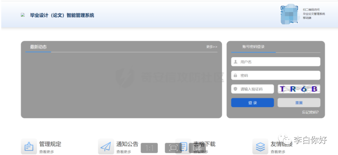 site:example.com 忘记密码|注册|找回密码.....通常这种地方比较容易出洞,经过一翻查找,物色到了某大学的一个毕业论文管理系统如下: