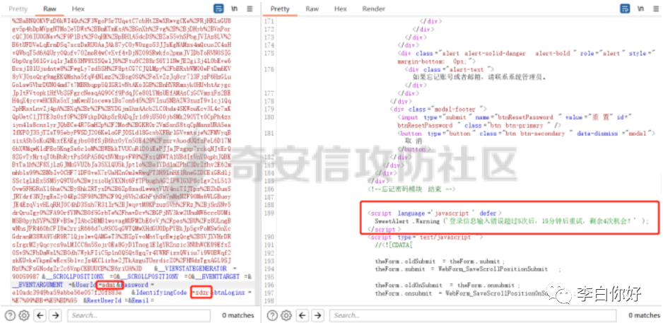 先正确填入验证码,将包发送到bp的重发器模块,点击发送之后显示登录信息错误