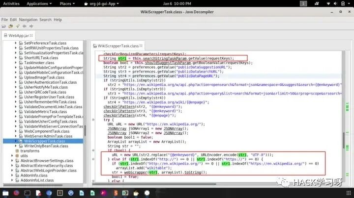 在“com.microstrategy.web.app.task.WikiScrapperTask”类中,我观察到字符串“str1”是由我们作为参数发送的用户提供的输入初始化的。它将检查提供的字符串是否以 http://(或https://)开头,如果是,那么它将调用函数“webScrapper”。