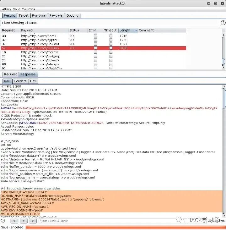 它从“ taskId ”参数中获取值来执行一些自定义数据收集和内容生成。通过枚举预建任务(Using Intruder),我发现每个预建任务都会检查有效的身份验证会话参数,但处理短 URL 且不检查有效身份验证会话的“ shortURL ”任务。攻击者可以使用此观察来访问此服务而无需任何身份验证。