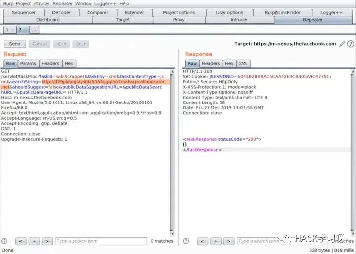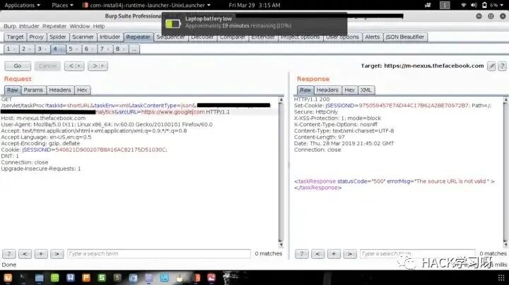 不幸的是,这次是一个盲目的 SSRF,所以我无法证明它允许提交内部 GET 请求。但是,从 MicroStrategy Web SDK(部署在域 m-nexus.thefacebook.com 上)的源代码中,我确认这是一个内部 SSRF。