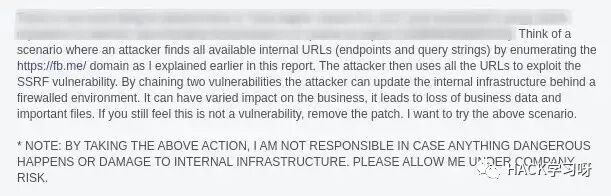 根据这一观察,我们无法枚举防火墙环境背后的内部基础设施,也无法泄露任何敏感信息。我知道如果我向 Facebook 报告这个,他们会拒绝,因为这个漏洞没有影响。