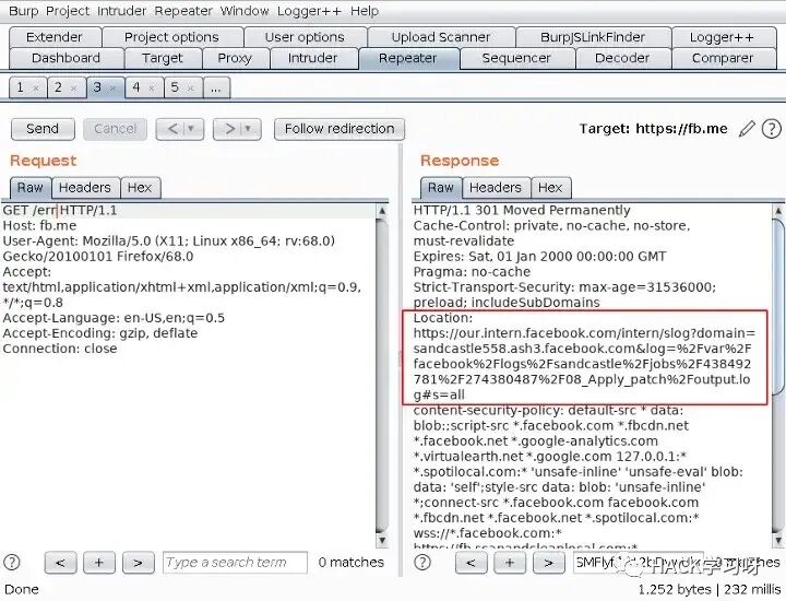 https://fb.me/xyz==> 301 永久移动 — https://our.intern.facebook.com/intern/{some-internal-data }==> 302 找到 — https://www.facebook .com/intern/{some-internal-data }==> 404 Not Found
