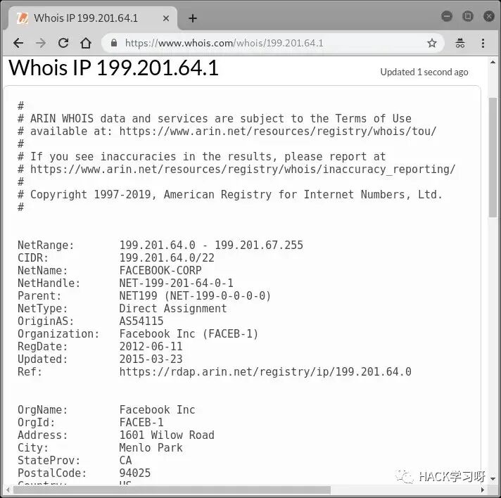5. IP — 199.201.64.1 属于 Facebook,已通过 whois 记录确认。