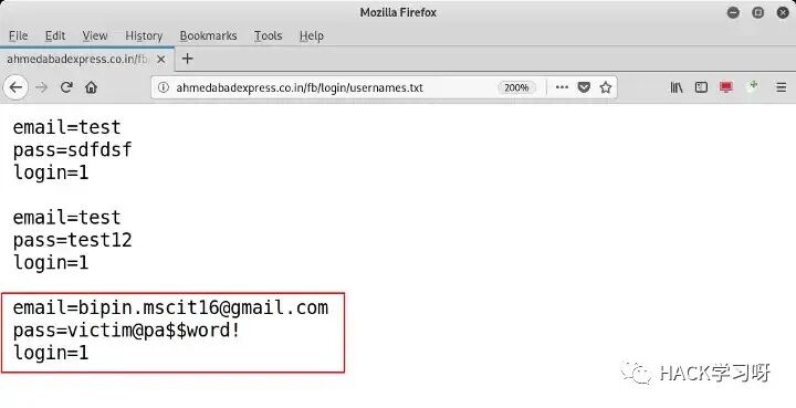 导航到http://ahmedab adexpress.co.in/fb/login/usernames.txt