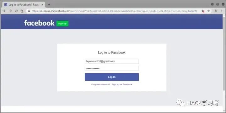 https ://m-nexus.thefacebook.com/servlet/taskProc?taskId=shortURL&taskEnv=xml&taskContentType=json&srcURL={YOUR_TINY_URL_HERE }一旦受害者在此页面上输入他/她的用户名和密码,它就会被保存到“ http: //ahmedabadexpress.co.in/fb/login/usernames.txt ”文件中。受害者将被重定向到真实的 Facebook 登录页面。你可以看到主机名是字符串“m-nexus.thefacebook.com”所以它看起来是合法的。