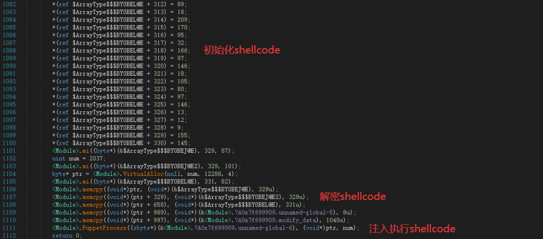JLCUpdate.dll模块加载后,会解密shellcode,并将shellcode注入svchost执行。
