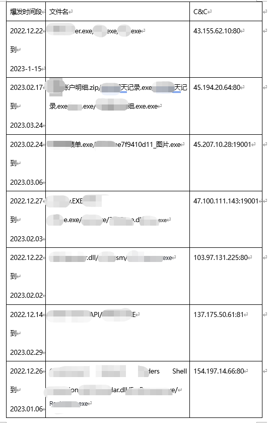 通过微步监测到的样本数据,再以之进行拓线联系,发现情况如下,该团伙主要在2022年12月到2023年3月之间进行大规模爆发,样本相关名称主要集中在金融操作相关、微信聊天记录、常用软件以及浏览器插件等4个方面,受害范围极广。