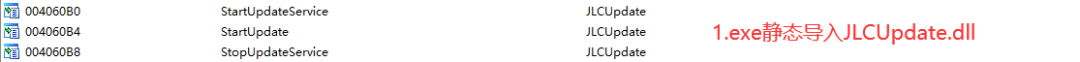 1.exe为白文件,但在启动执行后会加载同目录下名为JLCUpdate.dll的恶意dll执行(俗称白加黑)。