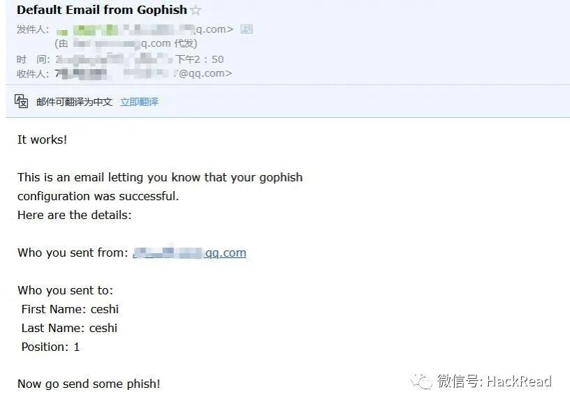 接下来准备工作已经完成,测试一下时候成功,尝试发送测试邮件看到成功发送,看看收件箱的内容。