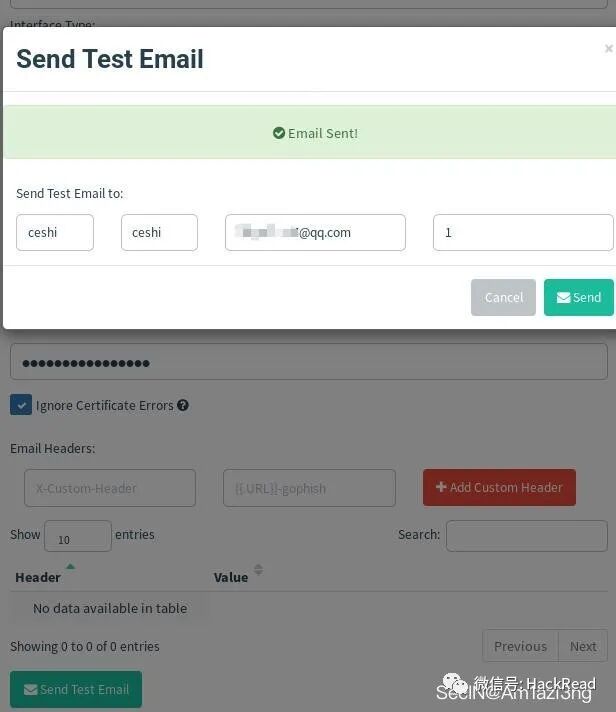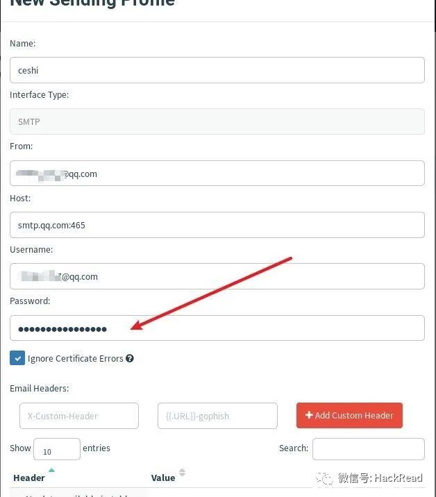 Email Headers(选填):Email Headers 是自定义邮件头字段,例如邮件头的 X-Mailer 字段,若不修改此字段的值,通过gophish发出的邮件,其邮件头的X-Mailer的值默认为gophish。