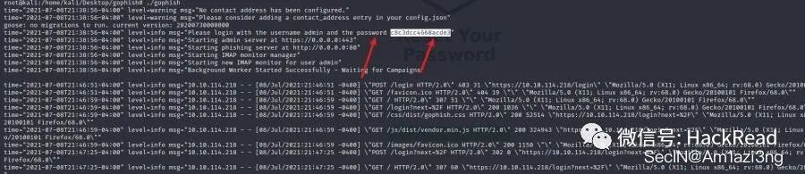 [email protected]:/home/kali/Desktop/gophish# ./gophish