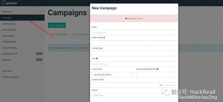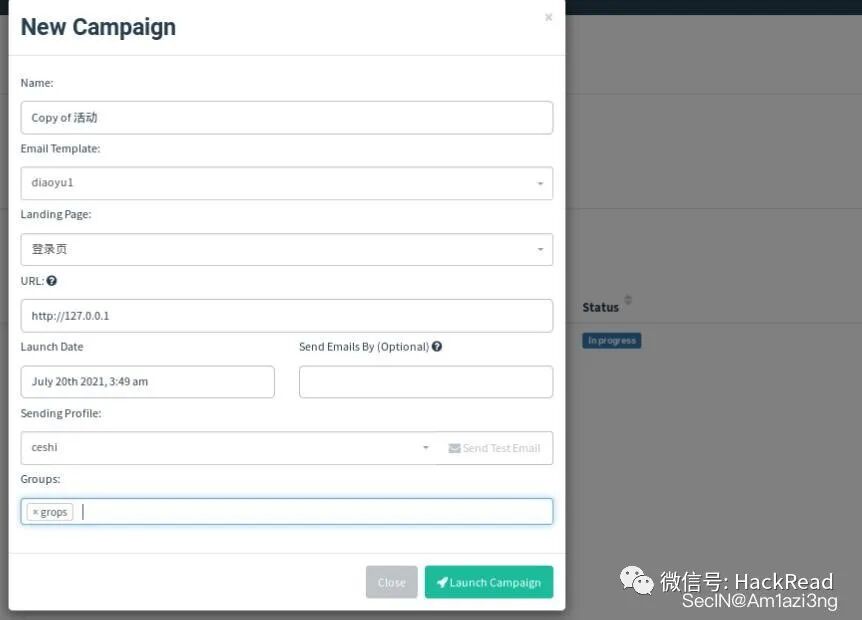 Sending Profile:选择上面设置的钓鱼邮箱名称。