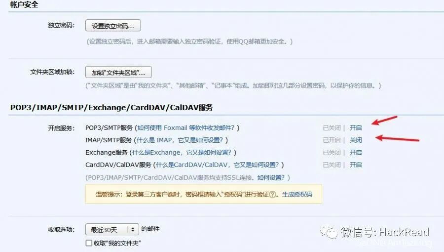 Password:Password 是SMTP服务认证的密码,例如qq邮箱,需要在登录qq邮箱后,依次点击 “设置”—>“账户”—>“开启SMPT服务”—>“生成授权码”来获取SMTP服务授权码,Password的值则填写我们收到的授权码。